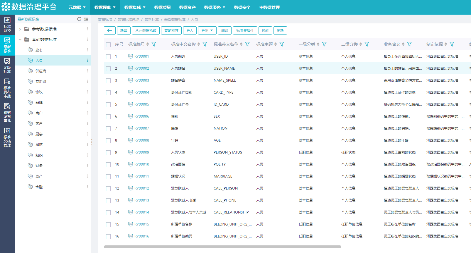 图. 数据标准管理界面