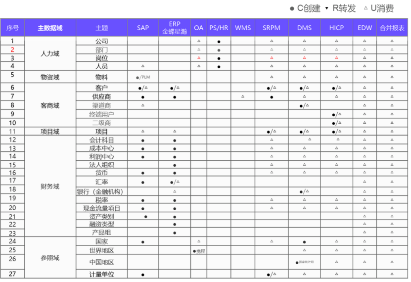2.主数据项目的实施涉及6大主题域27个子主题,具体描述如下: