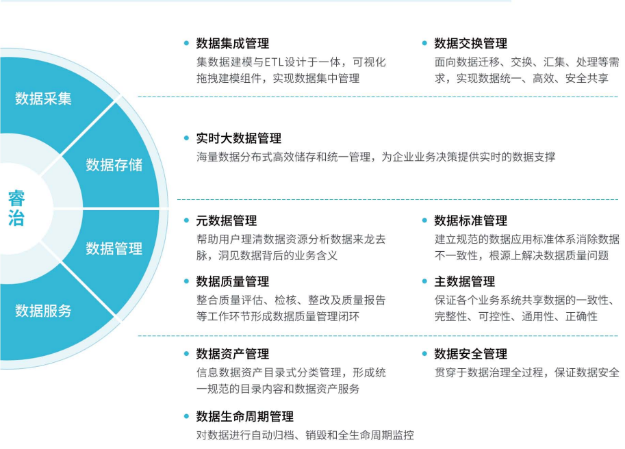 数据资产管理、数据全生命周期管理以及数据安全管理。其中,元数据、