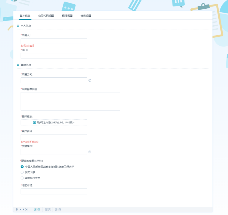 支持跨视图,扩展视图的信息也需要受到基本信息填写的约束。