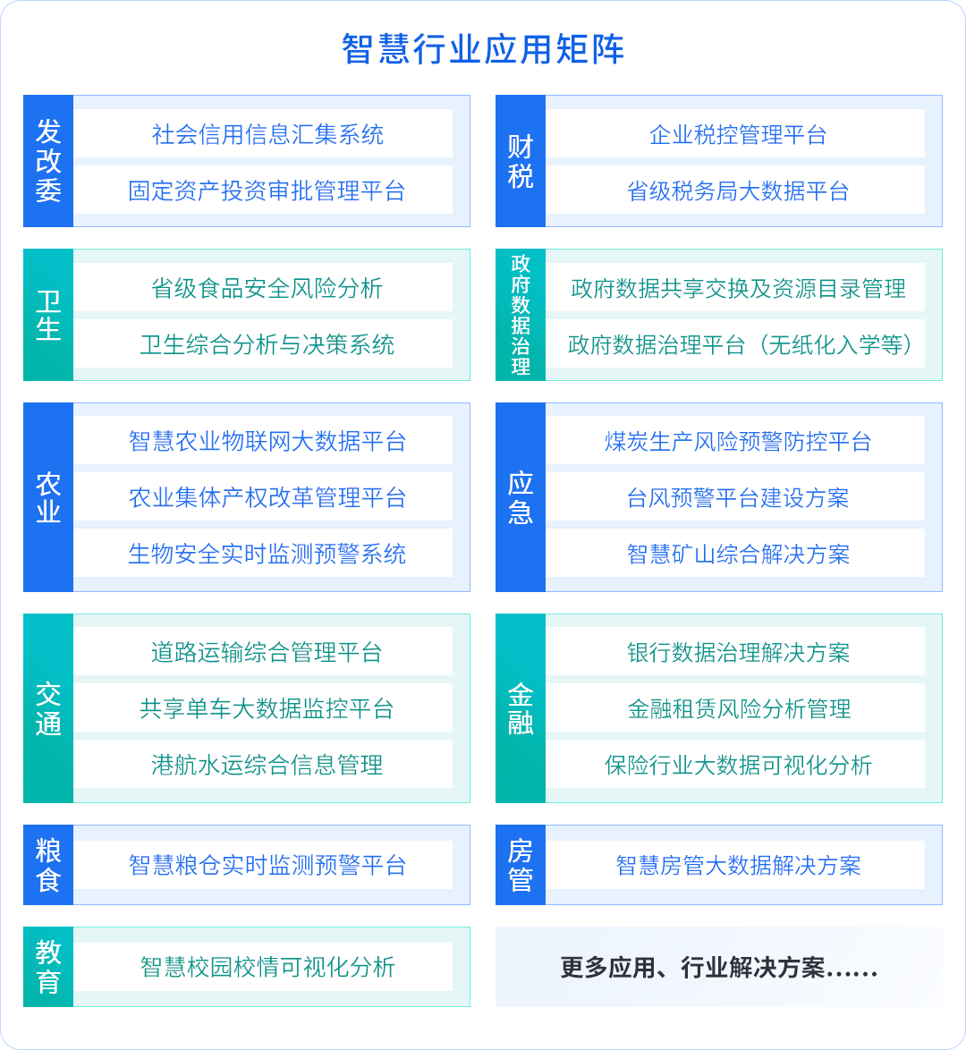 大数据解决方案】面对现在应急行业数据感知不全面、信息化规划不统一、业务系统不协同、数据不共享的问题,围绕构建国家应急管理大数据平台,建设集立体化全息感知网络、协同联动的智能应用体系、安全可靠的运行保障体系、完整统一的标准规范体系于一体的大数据治理与应用解决方案。【