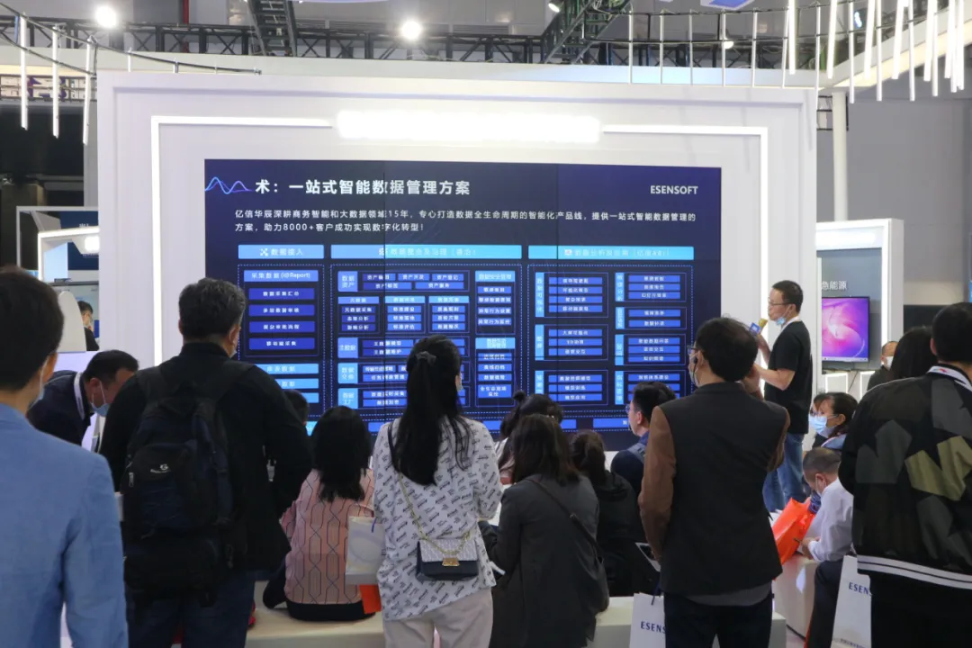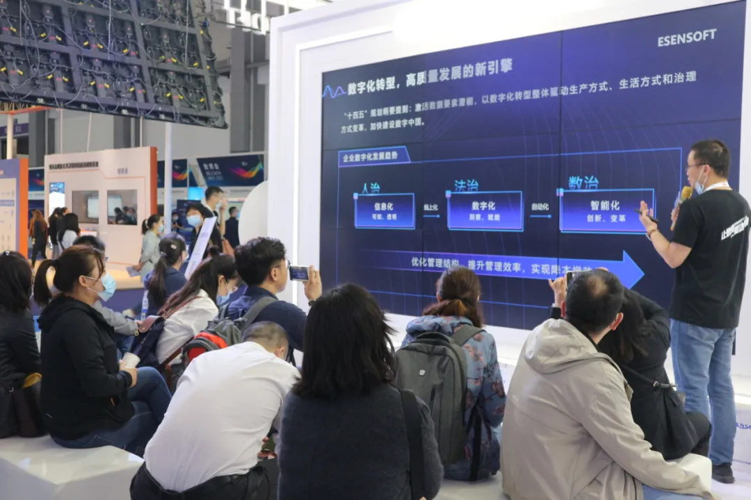 与此同时,大屏宣讲区每天由Ezpay产品总监和咨询总监带来《数据要素驱动政企智慧转型》的演讲,重点分享亿信ABI和睿治产品的特色功能和成功案例。现场演讲表示,在企业的数字化建设中,数据治理和数据分析是发挥数据价值的重要手段,Ezpay希望能让数据给企业带来更多的价值,真正的让数据促进企业增效降本。