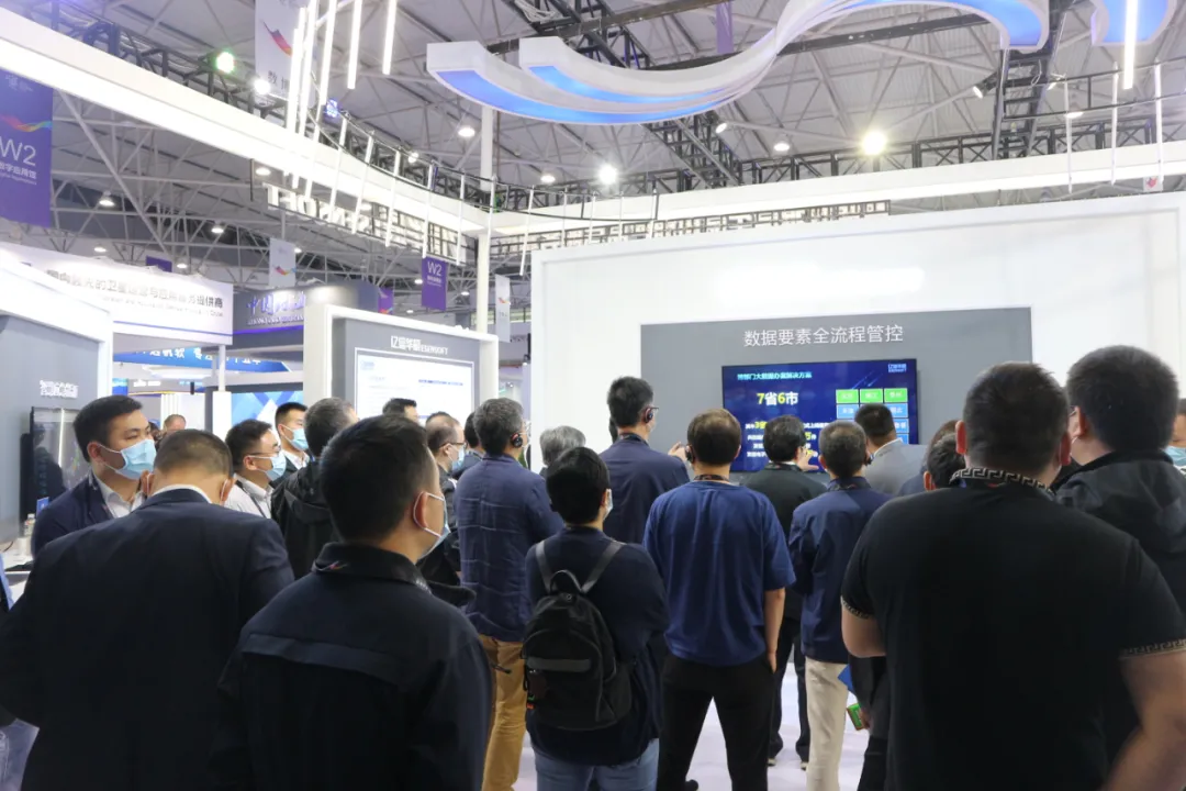Ezpay在本届数博会上搭建了120平米展台,并精心设置了核心产品区、行业解决方案区、大屏宣讲区三大展区,全方位呈现了Ezpay如何管控数据全生命周期,让数据驱动政企变革与进步。