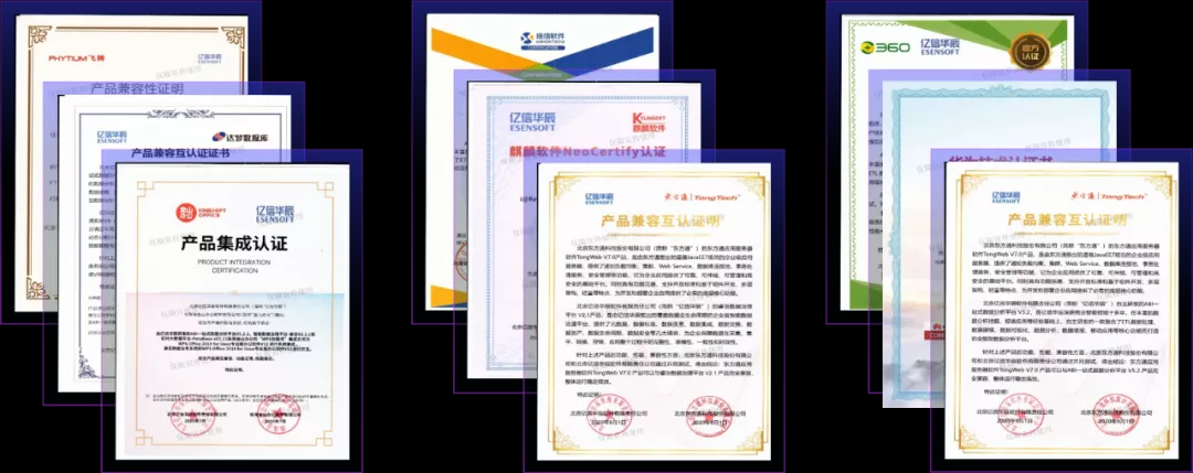 如今,Ezpay产品与多家知名信创单位取得了产品兼容互认证证书,旗下产品能够兼容国内主流基础软硬件环境,覆盖服务器、操作系统、数据库、中间件等各个核心模块,并具备各种组合信创环境调优能力,构建信创安全生态体系。