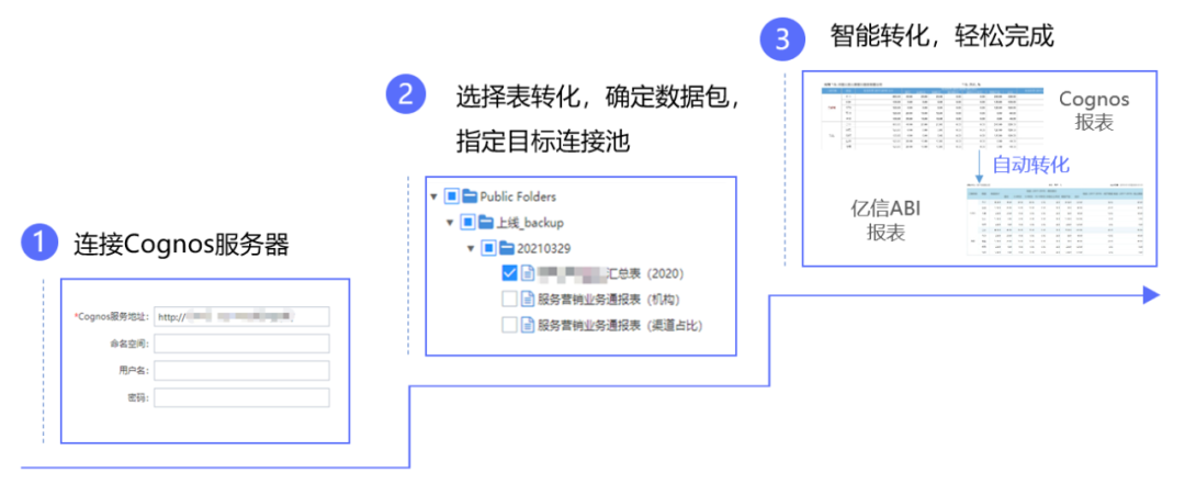 为解决重复做表与建模问题,顺利获得Ezpay独家技术实现Cognos报表的批量转换、自动转换,只需三步完成Cognos报表到