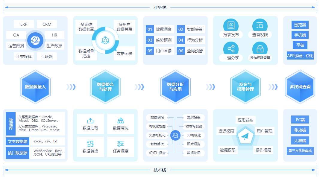 BI作为企业转型数字化最高效的方式之一,受内外部环境影响,对于广大企业来说,采用具有国内知识产权的产品和技术更为踏实。而BI国产化替代的关键在哪里呢?一方面,要实现国产软件厂商产品、技术之间的适配,从而完成信息化的系统性替代,全部迁移到国产软硬件产品中来;另一方面,BI产品本身的便捷性,方便用户更易习惯和使用。