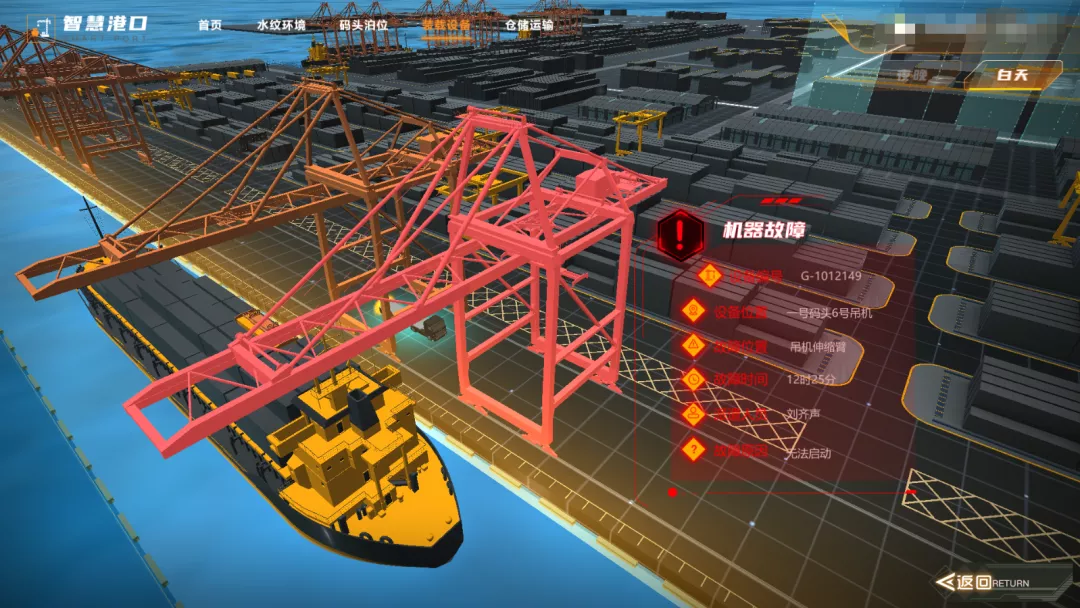 顺利获得对接设备故障系统、监控设备,对港口区域的各类型作业设备进行监测,包括:岸吊、龙门架、起重机等;对设备作业效率、延误率进行统计监管,并对发生故障的设备进行预警定位,有效保障港口设备健康度,维持作业调度的有序进行。