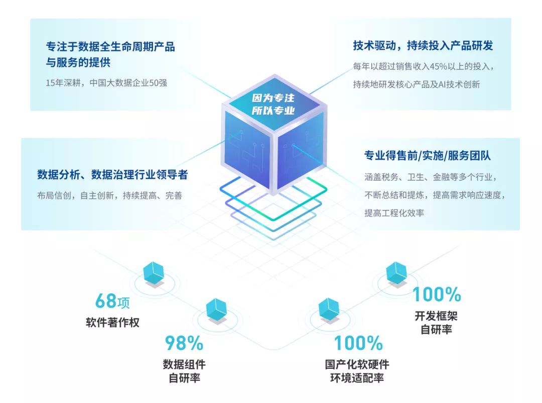 数据采集、存储、治理、分析到智能应用的数据全生命周期管控方案,帮助政企实现数据驱动、数据智能,其拳头产品