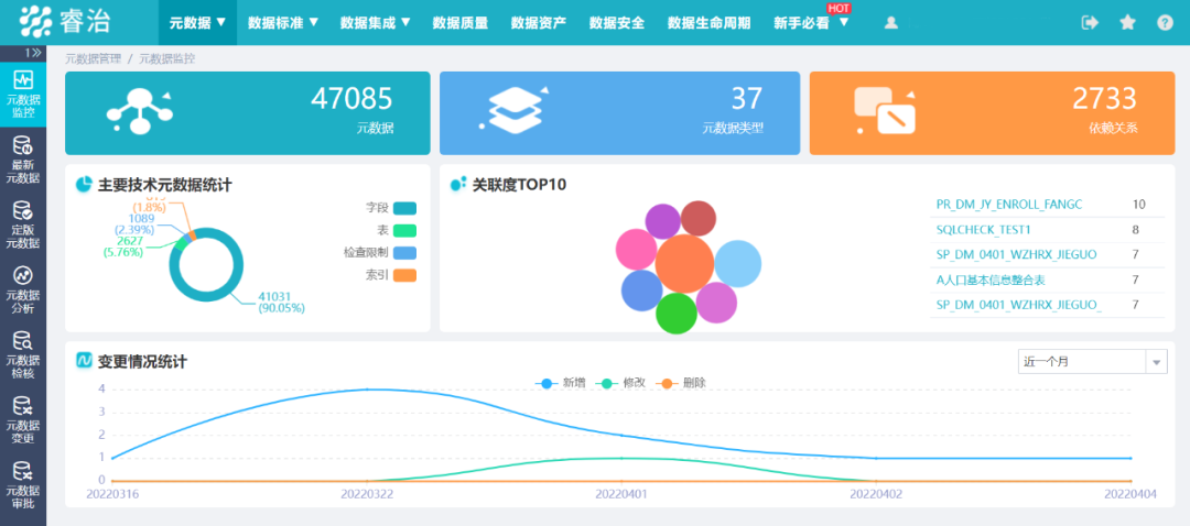 数据分析,快速理清数据资源,分析数据来龙去脉,构建数据地图,为数据标准建设和数据质量给予基础支撑。