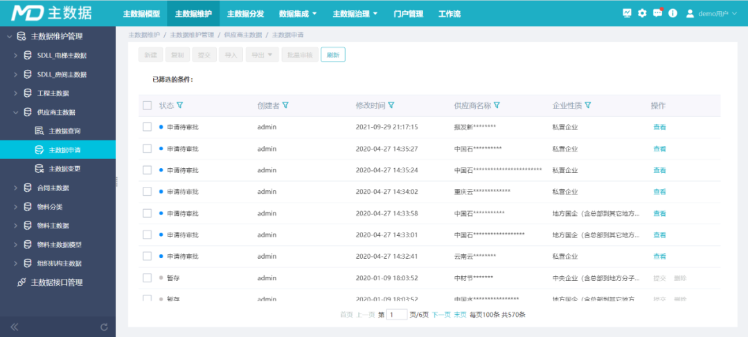 主数据管理对需要共享的数据建立统一视图和集中管理,为各业务系统数据调用给予黄金数据。