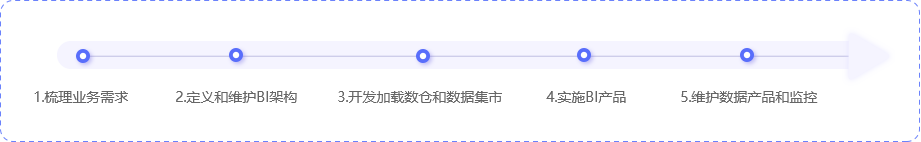 数据仓库及商业智能方案将我公司多年的项目实施经验、成熟的商业智能产品与丰富的数仓建设与技术能力相结合,为企业给予数据仓库和数据集市搭建、外部数据补录、综合指标分析、KPI指标预警及预测等内容的建设,在满足日常管理工作需要的同时,也能够为业务决策给予支撑。方案实施步骤如下: