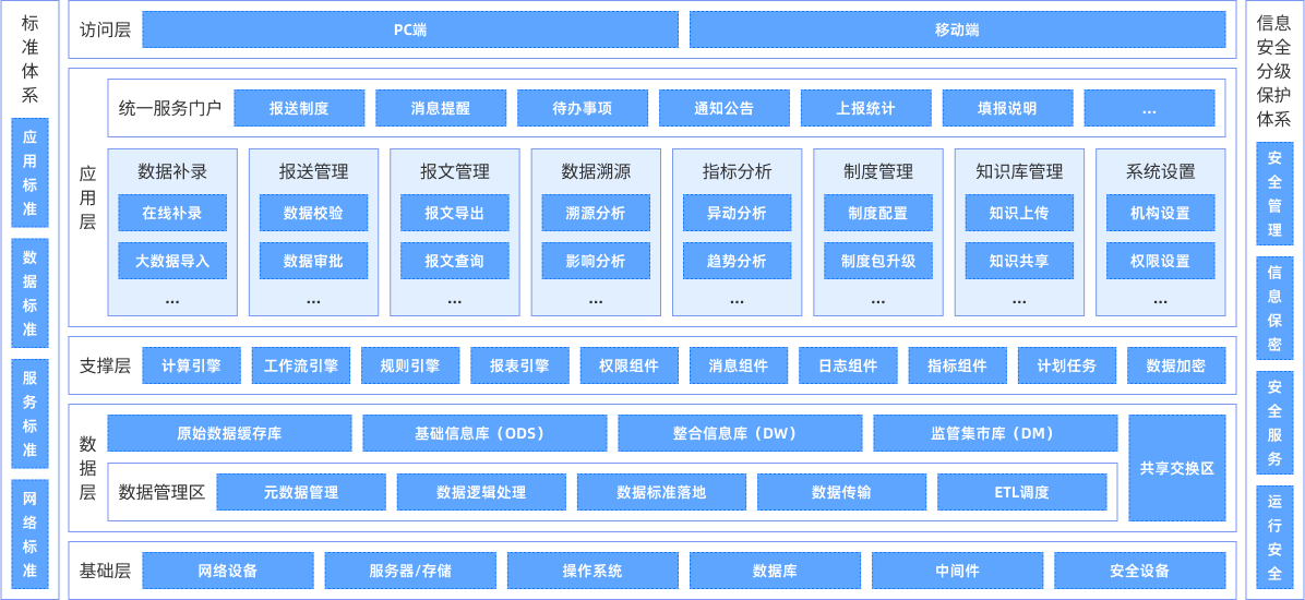 给予从数据补录、报表初始化、在线填报、自动校验、流程审核、数据汇总、报文生成、在线盖章、报文导出、接口直连上报等全流程功能。