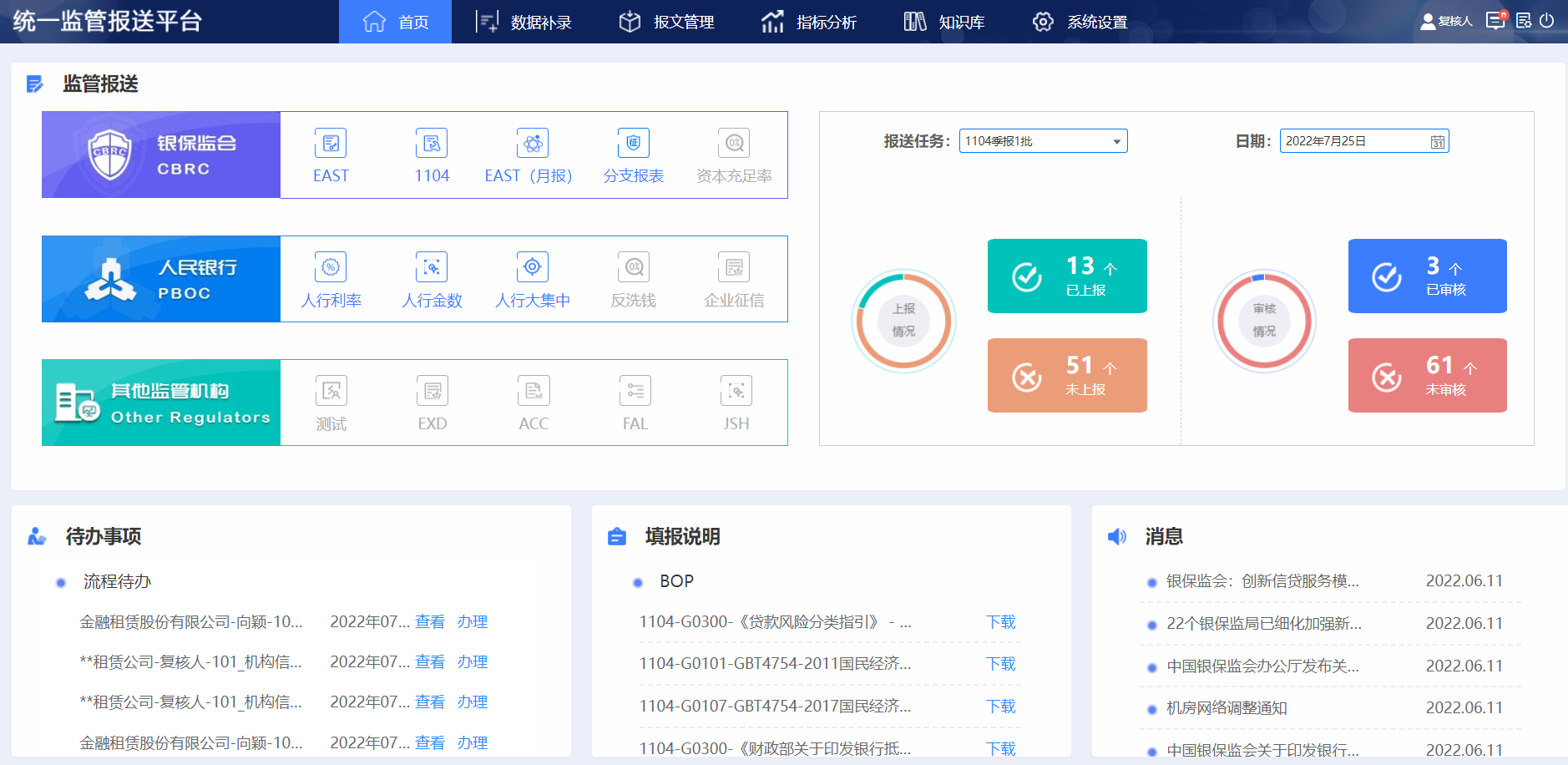 一站式、全流程监管报送平台,顺利获得自动化报送降低错报漏报风险,避免监管处罚(如EAST系统违规案例),满足《银行保险监管统计管理办法》等要求。